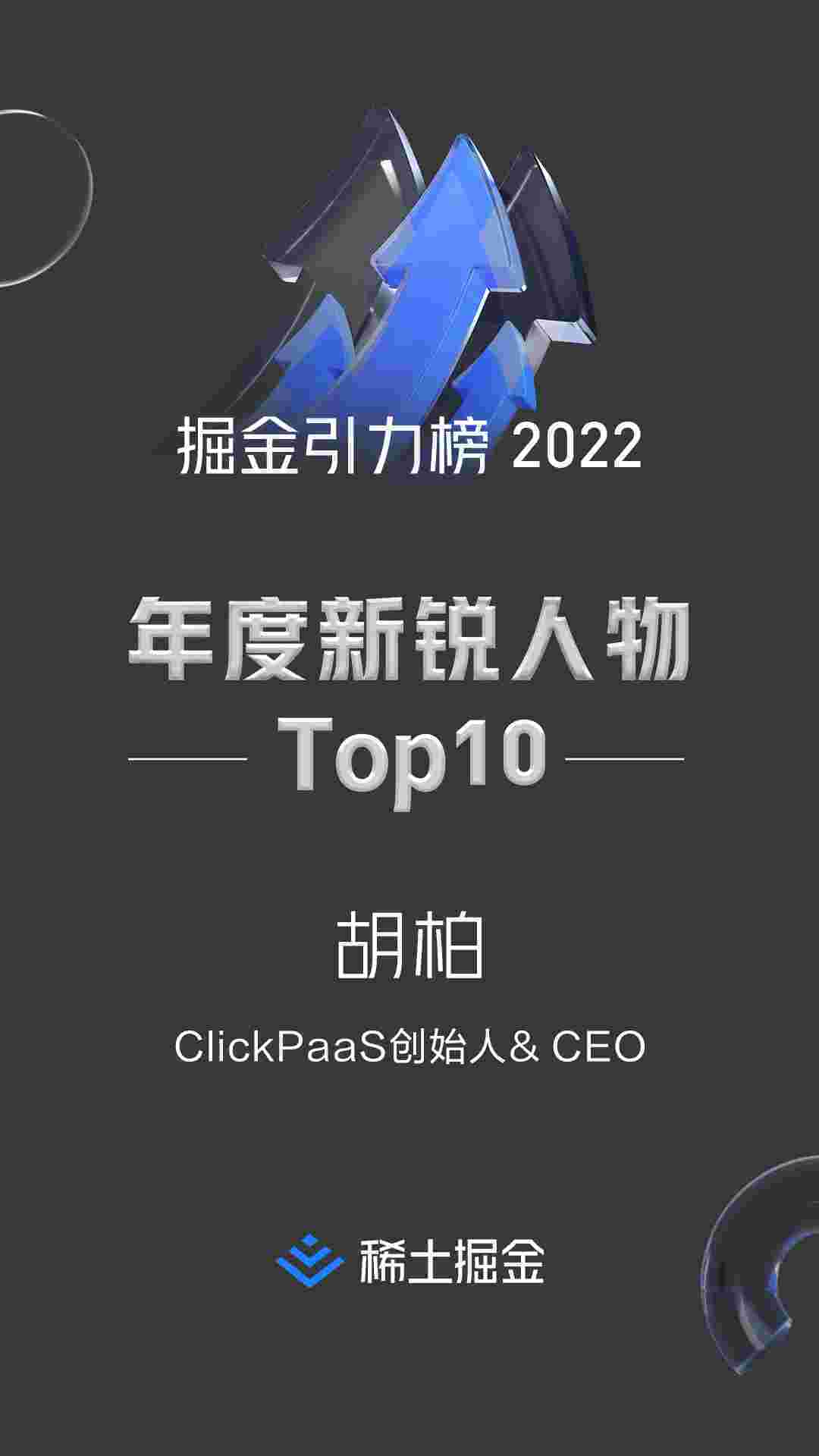 2022年1月6日,,稀土掘金社区第一届「掘金未来大会」成功举办,,,,会上发布了“2022 稀土掘金引力榜 年度新锐人物”榜单,,,,上海爱湃斯科技有限公司(简称小米钱包)创始人及CEO胡柏实力入选年度新锐人物TOP 10。。