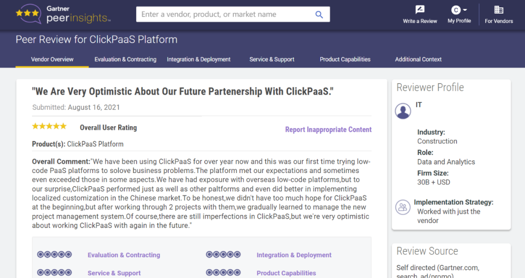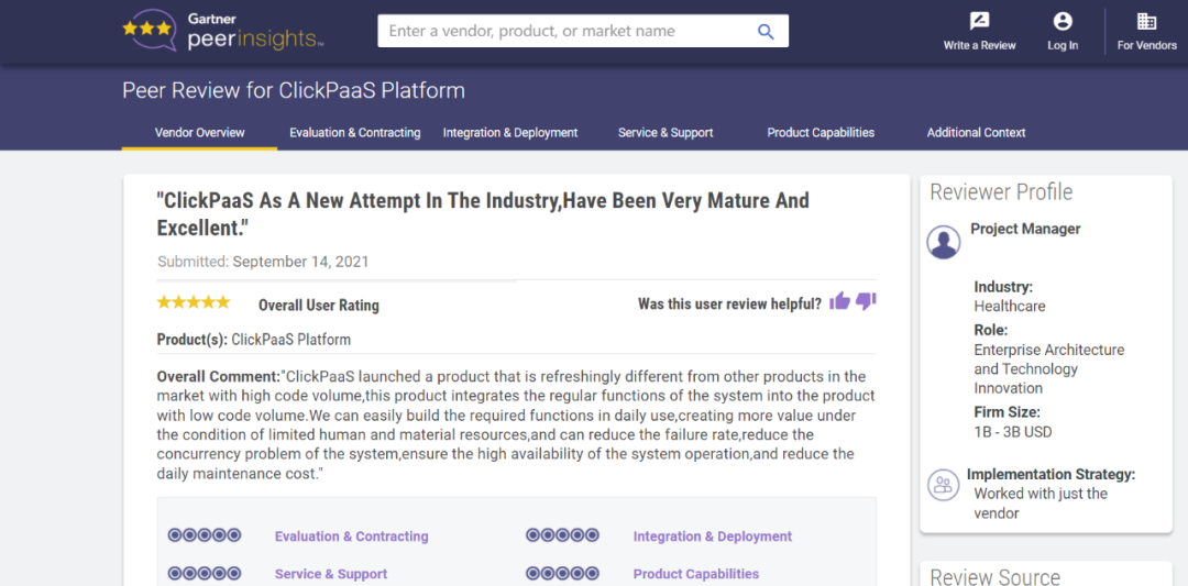 Tips:::【Peer Insights】——用户对企业IT产品和服务发布真实评价的平台。。。目前已有355个市场,,,,255,000条经过验证的评价。。。。每一条评价Gartner会针对参评企业营收规模及参评人员信息做验证、、评价内容做多维核实。。